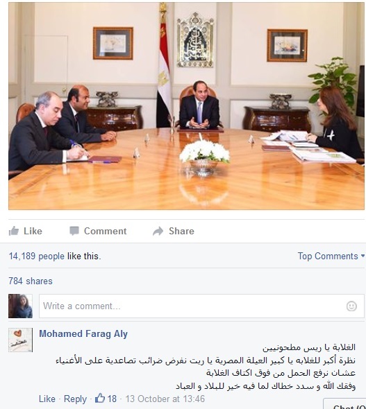 بعد نشر صفحة "عبد الفتاح السيسي"، فى الخامس عشر من نوفمبر، خبراً عن تشكيل لجنة لتدبير السلع وإتاحتها في الأسواق، توالت الاقتراحات.