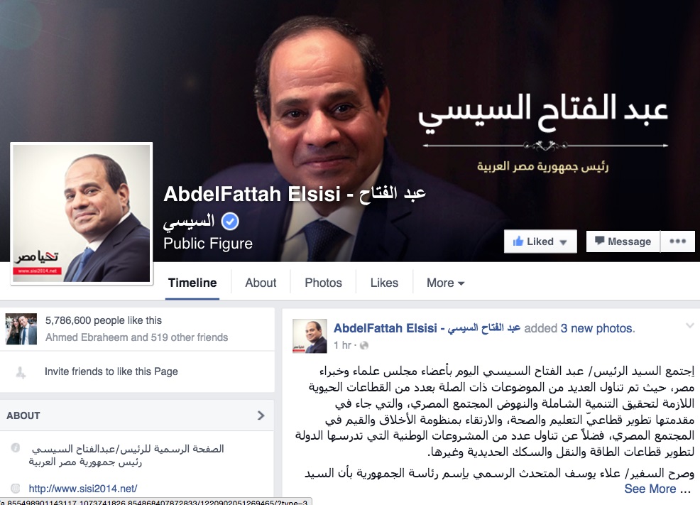 إنها الصفحة الرسمية للرئيس عبد الفتاح السيسي على موقع فيس بوك.