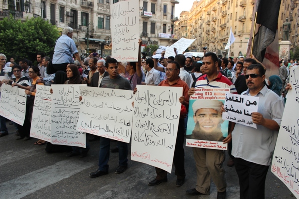 مسيرة لجامعة الدول العربية ضد التدخل العسكري الأجنبي في سوريا، 1 سبتمبر 2013. تصوير: أحمد حامد - أصوات مصرية